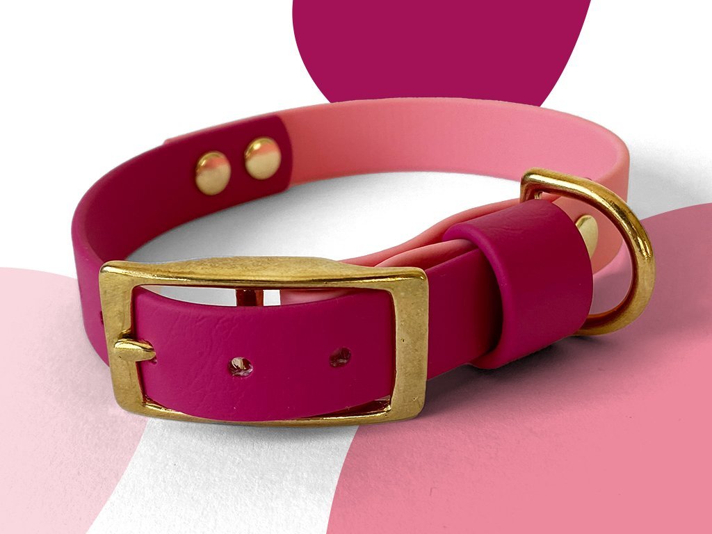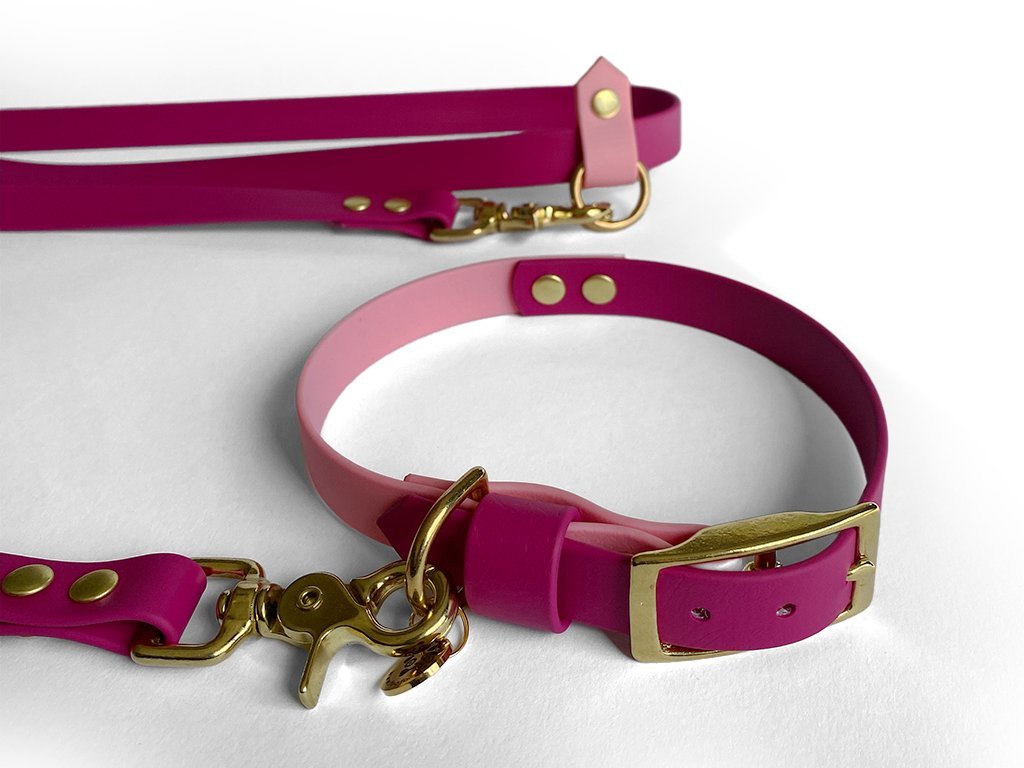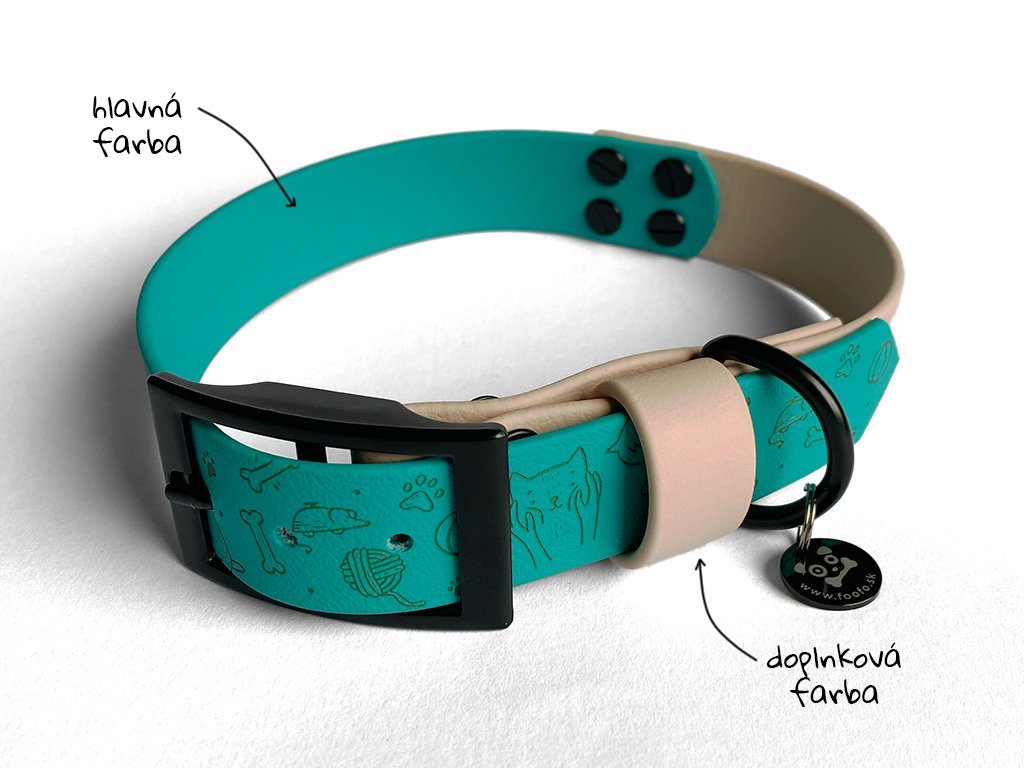 - Materiál: 1,9 cm alebo 2,5 cm široký BioThane®, kovový hardware podľa vášho výberu