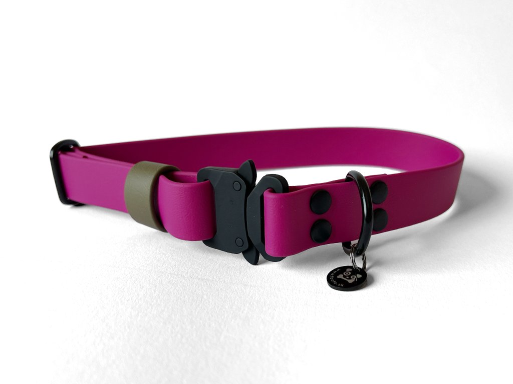 - Materiál: 1,9 cm alebo 2,5 cm široký BioThane®, kovový hardware podľa vášho výberu